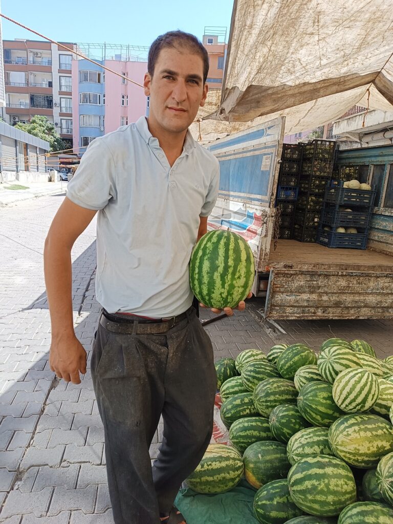 Batman’ın Beşiri ilçesinde yetiştirilen karpuzlar, pazarlarda tezgâhlarda yerini aldı.