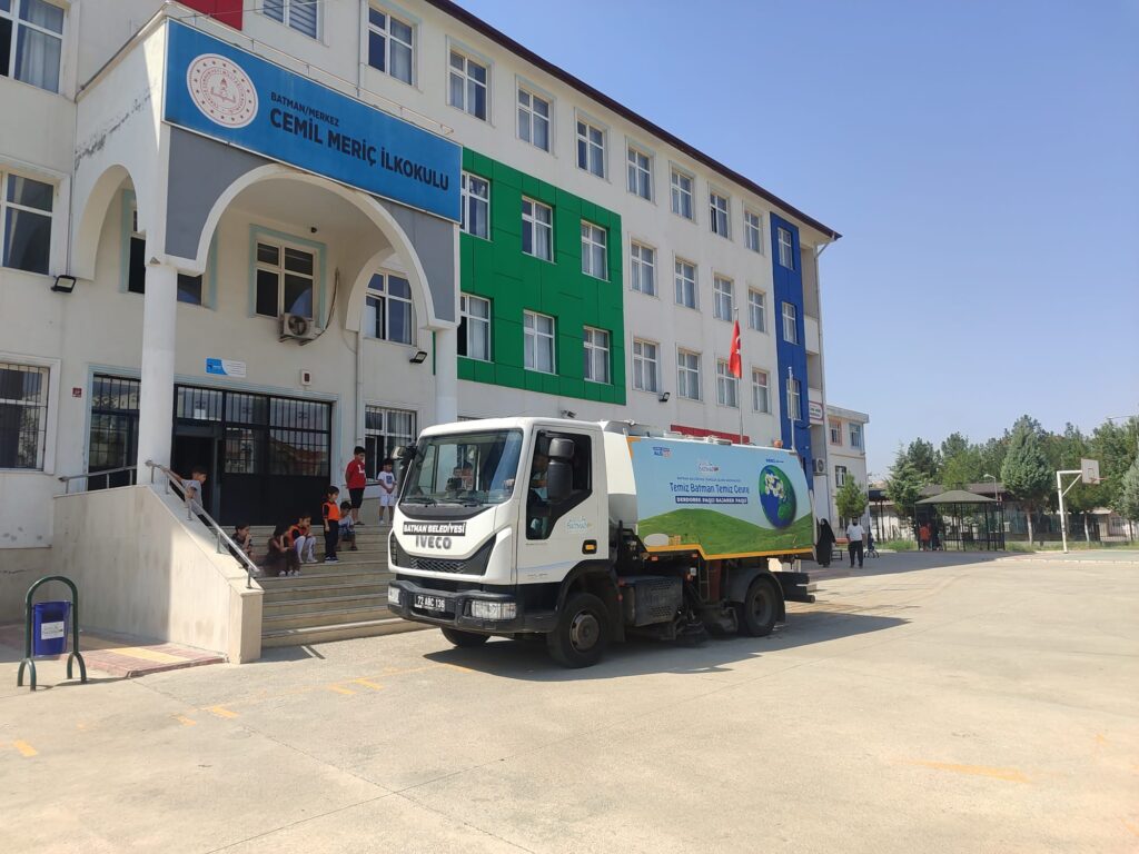 8 Eylül 2025 Pazartesi günü başlayacak yeni eğitim-öğretim yılı öncesinde, Temizlik İşleri Müdürlüğü ekipleri Batman’daki tüm okullarda temizlik çalışması gerçekleştiriliyor. Yol süpürme araçlarıyla okul içindeki alanlarda genel temizlik çalışmaları yapılan çalışmalarla, okul idarecileri, öğretmenler ve öğrenciler için daha hijyenik bir ortam sağlandı. Tüm okulların alanlarını temizleyecek olan ekipler, öğrenci velilerinden de büyük takdir topluyor.