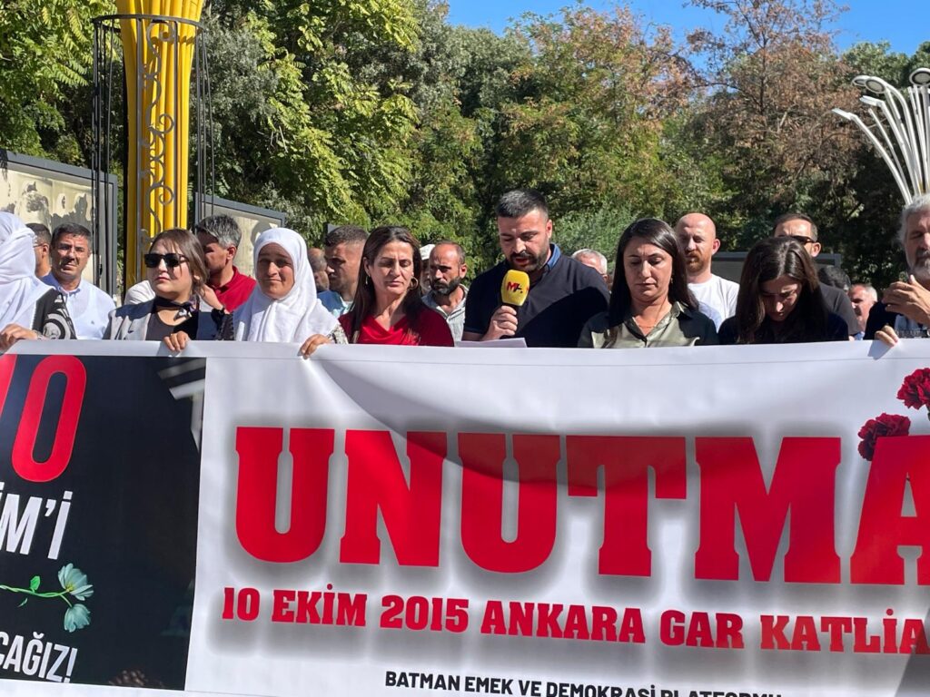 Batman Emek ve Demokrasi Platformu, Türkiye tarihinin en kanlı saldırılarından biri olan 10 Ekim Ankara Katliamı’nın 10. yılında bir kez daha adalet talebiyle bir araya geldi.