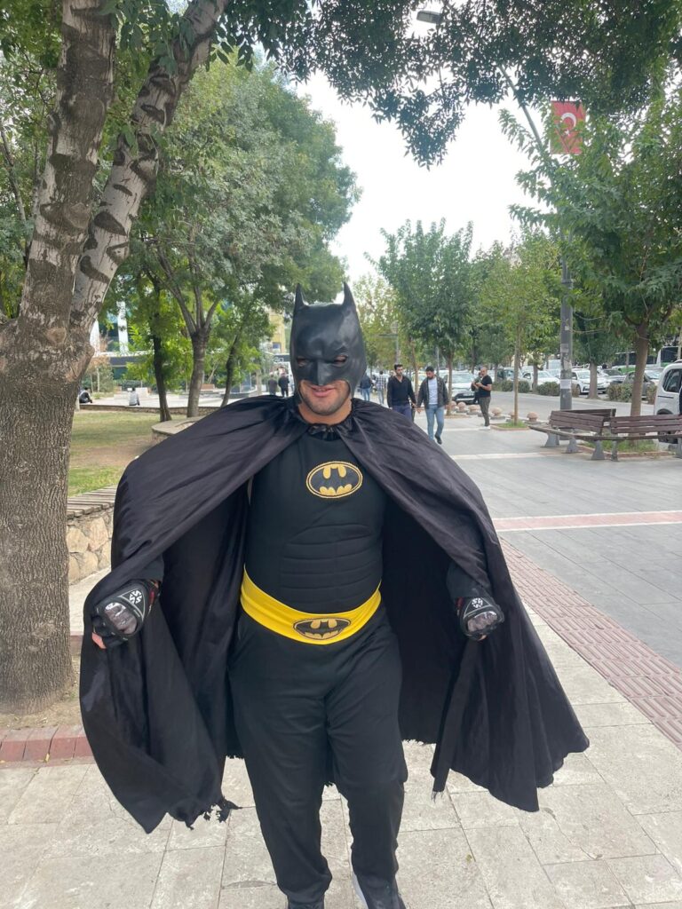 Batman’da, Yarasa Adam (Batman) kostümü giymiş bir kişi, Atatürk Parkı önünde, üzerinde “Batman” yazılı panonun önünde poz vererek vatandaşların ilgisini çekti.