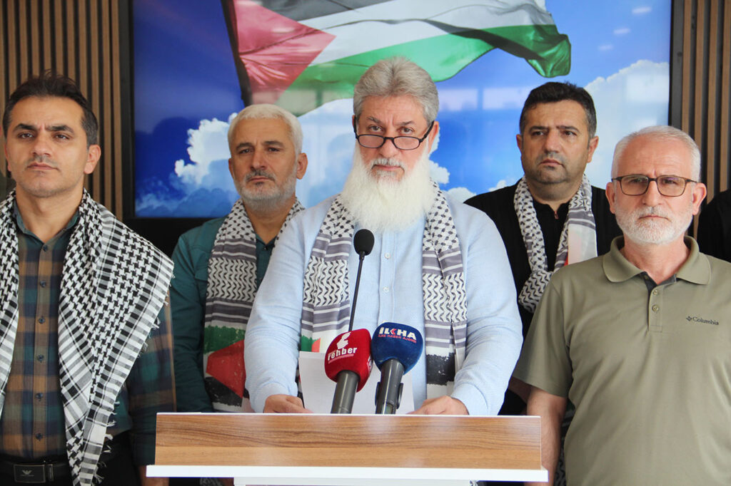 STK’lar adına basın açıklamasını okuyan Umut Kervanı Batman Derneği Başkanı Nurettin Teymur, Gazze’nin büyük bir yıkım yaşadığını, ancak son yapılan anlaşmayla birlikte HAMAS’ın bölgesel ve uluslararası alanda siyasi bir aktör olarak tanındığını dile getirdi. Teymur, “Amerika ve Batı’nın desteğini arkasına alan İsrail amacına ulaşamadı. Bu anlaşma, HAMAS’ın zaferi ve israilin hezimetidir. Artık israil, girdiği bataklıktan çıkamaz hale gelmiştir” dedi.