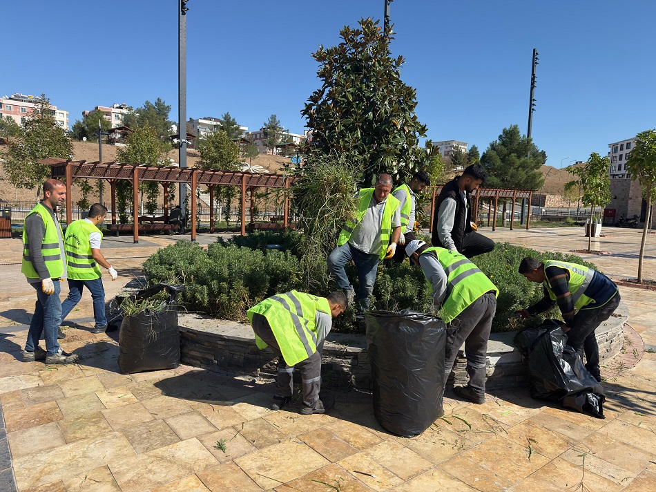 Mevsimsel koşulların dikkate alındığı çalışmalarda 20 kişilik ekip, parkın yeşil dokusunu güçlendirmek ve vatandaşlara daha estetik, ferah bir yaşam alanı sunmak amacıyla çalışmalarını aralıksız sürdürüyor.