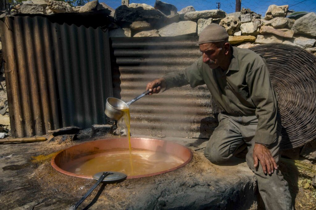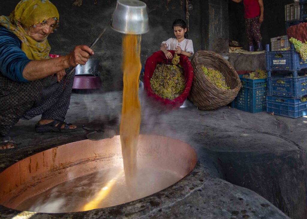 Batman’ın Gercüş ilçesine bağlı Yüceköy (Mozgelane) köyünde, yöreye özgü mezrone üzümünden yapılan pekmez üretimi bir kez daha başladı.