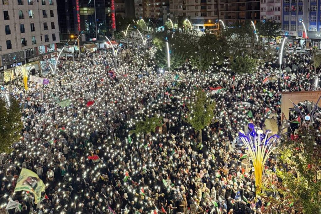 Batman’da düzenlenen yürüyüşte, on binlerce kişi Aksa Tufanı’nın ikinci yıldönümünde Gazze halkına destek vermek amacıyla bir araya geldi.