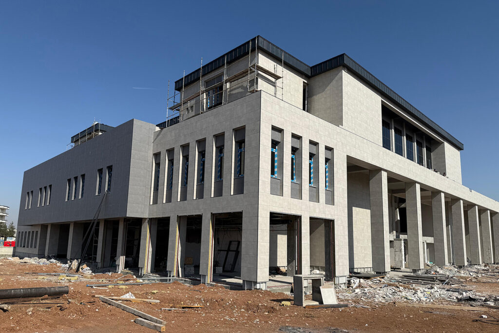 İç mekân sıva ve alçı imalatlarının yüzde 95’i, dış cephe kaplamasının yüzde 85’i, alüminyum doğrama ve asma tavanların yüzde 50’si, dış cephe cam kaplamanın yüzde 40’ı, iç mekân seramik uygulamalarının yüzde 35’i ve asansör montajının yüzde 20’si tamamlandı. Çatı kaplama çalışmaları ise bitirildi. Modern yapısıyla bölgedeki sağlık altyapısına katkı sunması beklenen hastane, hem hasta tedavilerinin hem de diş hekimliği alanındaki akademik çalışmaların yürütülebileceği bir merkez olacağı ifade edildi.