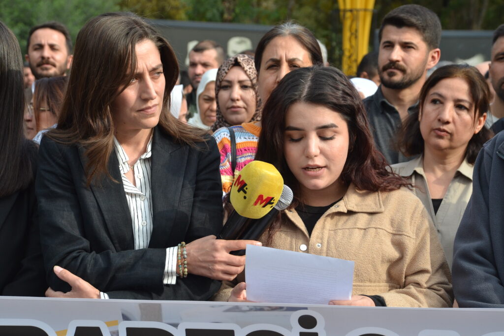 Açıklama, Yılmaz Güney Sergi Alanı’nda çok sayıda sivil toplum temsilcisi ve vatandaşın katılımıyla gerçekleştirildi. Platform adına basın açıklamasını Dilan Kırar okudu. Kırar, konuşmasında 4 Kasım tarihinin Türkiye demokrasi tarihinde bir kırılma noktası olduğunu belirterek şu ifadeleri kullandı: “4 Kasım 2024, Mardin, Batman ve Halfeti belediyelerine kayyum atanmasının tarihidir. Aynı şekilde 4 Kasım 2016 da HDP Eş Genel Başkanları Selahattin Demirtaş ve Figen Yüksekdağ’ın da aralarında bulunduğu 12 milletvekilinin tutuklandığı gündür. Bu tarih, demokrasiyi askıya alan müdahalelerin ve halk iradesine yönelen sistematik baskının sembolüdür.”