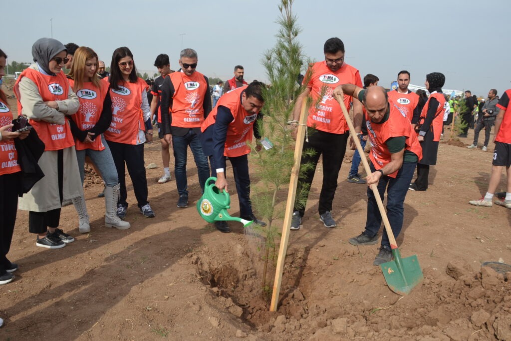 Dünya genelinde orman kaybına dikkat çeken Vali Canalp, “Dünyadaki orman varlığı azalıyor, ama Türkiye’de tam tersi bir trend yaşıyoruz. Bugün Avrupa ülkeleri arasında en fazla ağaçlandırma yapan ülke Türkiye’dir. Avrupa’da birinci, dünyada ise dördüncü sıradayız. Batman’a hangi yönden giriş yaparsanız yapın, sizi yolun her iki tarafında çam ağaçlarından oluşan bir kuşak karşılayacak. Bitlis, Diyarbakır, Mardin, Beşiri veya Siirt istikametlerinden gelirken Batman sınırına geldiğinizi bu ağaçlar gösterecek. Bu yıl eksik olan kısımları tamamlayarak projeyi nihayete erdireceğiz” dedi. Konuşmaların ardından Vali Ekrem Canalp ve eşi Dr. Ayten Canalp, çam fidanlarını toprakla buluşturarak ilk can suyunu verdi. (Haber: Mehmet Sıddık Avşar)
