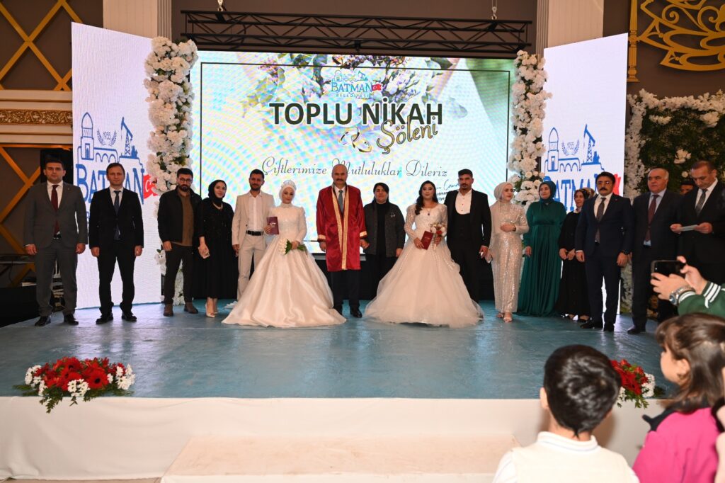 Batman Belediyesi Sosyal Yardım İşleri Müdürlüğü tarafından hayata geçirilen “Toplu Nikah ve Çeyiz Desteği Projesi” kapsamında; evlenecek çiftlere destek amacıyla 100 çift için resmî nikâh organizasyonu düzenlenirken, çiftlere çeyiz desteği de sağlandı. Güngör Palas Düğün Salonu’nda gerçekleştirilen törene Vali ve Belediye Başkan Vekili Ekrem Canalp ve eşi Dr. Ayten Canalp, Vali Yardımcıları, Belediye Başkan Yardımcıları, bazı kurum müdürleri, nikâhı kıyılan çiftler ve aileleri katıldı. Belirlenen kriterleri yerine getiren ve kura sonucu başvurularında herhangi bir sorun bulunmayan çiftlerin toplu nikâhları kıyıldı. Nikâh öncesinde heyecanları gözlerden kaçmayan genç çiftler, başvurularının kabul edilmesiyle birlikte 13 parçadan oluşan çeyiz paketini almaya hak kazandı.