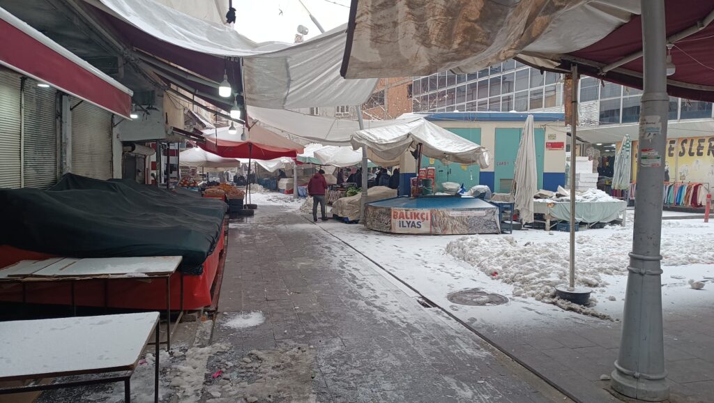 Batman’da kar yağışının ardından etkisini artıran dondurucu soğuk ve gizli buzlanma, günlük yaşamı felç ederken, kentin en işlek pazarlarından Alo Tevşo’da tezgahlar açılmadı.