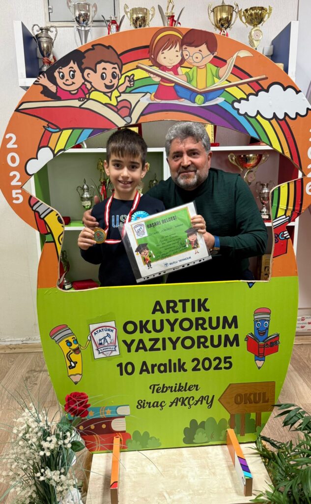 Atatürk İlkokulu 1/E sınıfı öğrencileri, okuma-yazma sürecindeki harfleri tamamlayarak “Artık Okuyorum, Yazıyorum” etkinliğiyle başarılarını kutladı.