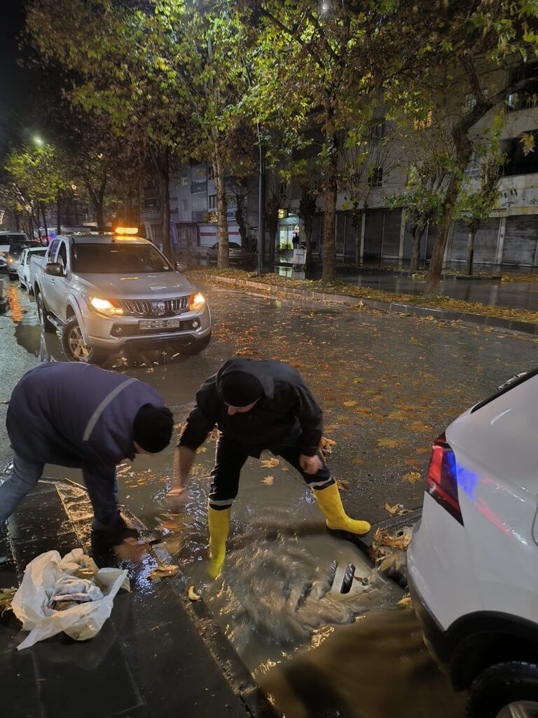 Su ve Kanalizasyon İşleri (BASKİ) başta olmak üzere Fen İşleri, Park ve Bahçeler ile Temizlik İşleri Müdürlüklerine bağlı ekipler, koordineli ve kesintisiz şekilde çalışmalarını sürdürdü. Belediyenin 153 ve 185 Acil Çağrı Merkezlerine gelen ihbarlara anında müdahale eden ekipler, özellikle mazgal ve rögar kapaklarında biriken yaprak, çöp ve çamurları temizleyerek altyapının tıkanmasını önledi.