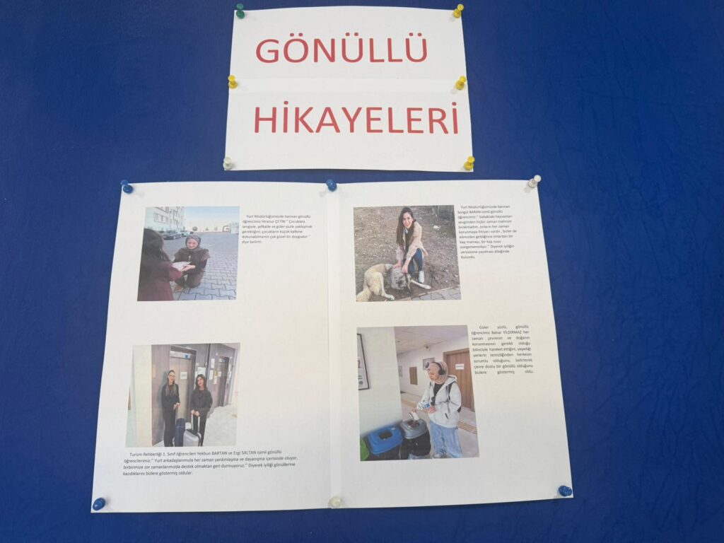 Süveybe Ana Kız Öğrenci Yurdu’nda öğrencilerin gönüllü hikayeleri panolarda sergileniyor.