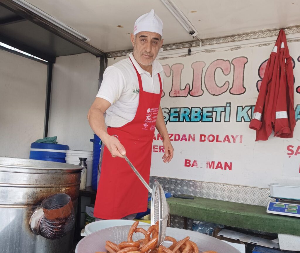Batman İl Kültür ve Turizm Müdürlüğü karşısında ‘Tatlıcı Siyo’ yazılı kamyonetiyle tatlı üretip satan Şaban Aslan, yıllardır halka ve tulumba tatlısını Batmanlılarla buluşturuyor.