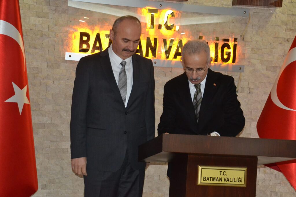 Bir dizi temas kapsamında Batman’a gelen Ulaştırma ve Altyapı Bakanı Abdulkadir Uraloğlu, programına Batman Valiliği ziyaretiyle başladı. Valilik fuaye alanında şeref defterini imzalayan Bakan Uraloğlu, ardından Vali Ekrem Canalp ile makamda bir görüşme gerçekleştirdi.