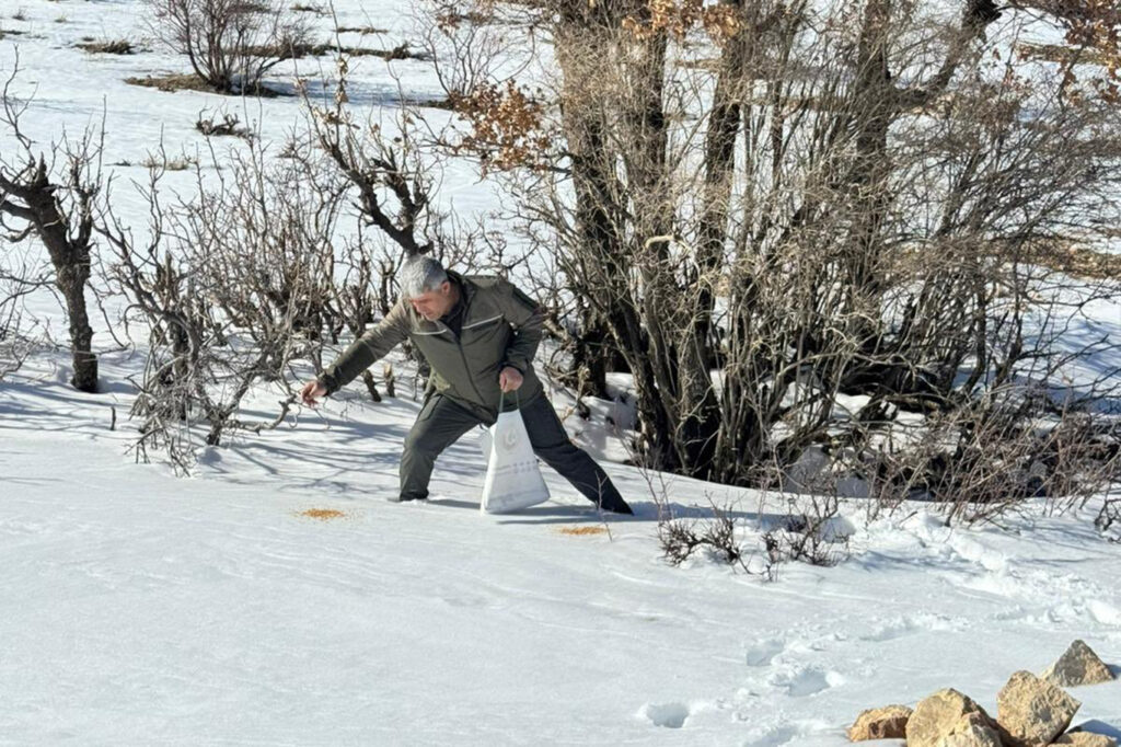 Batman’ın Gercüş ilçesinde, yoğun kar yağışı nedeniyle yiyecek bulmakta zorlanan yaban hayvanları ve kuşlar için yemleme çalışması yapıldı.