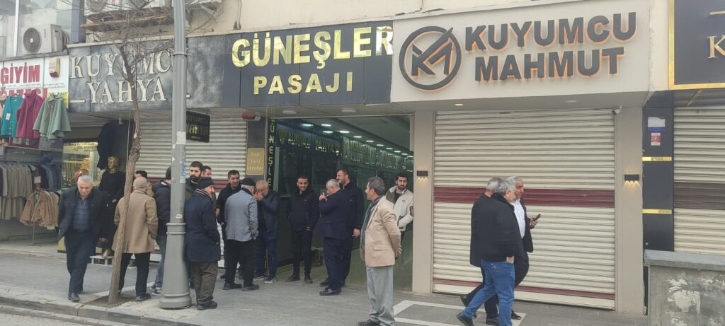 Bir kuyumcuya yönelik soygun girişimi sonrası Batman’da kuyumcu esnafı ve tüccarlar, artan güvenlik endişelerine dikkat çekmek için iş yerlerini kapatarak belediye önünde toplandı.